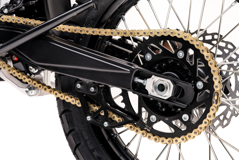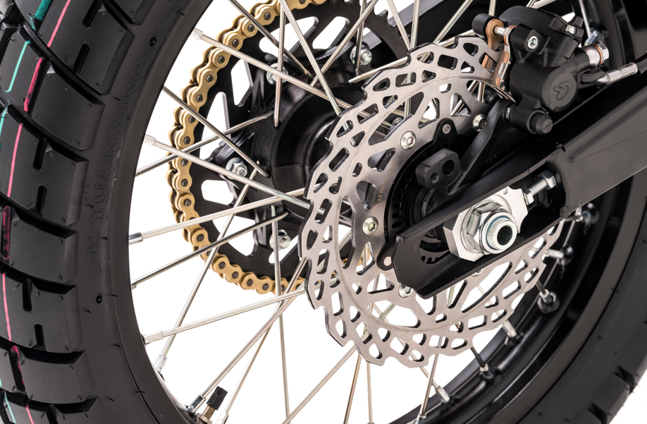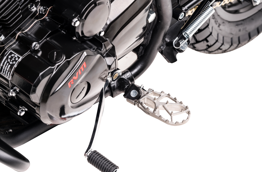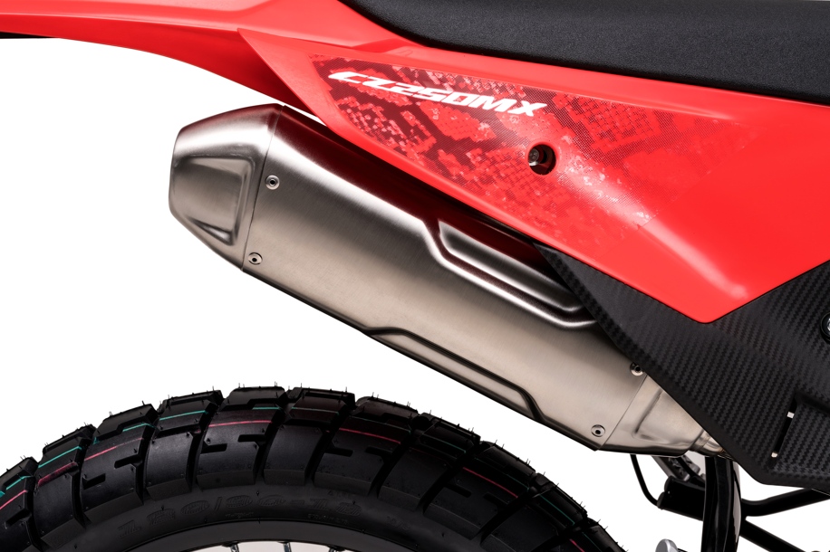 - Se puede configurar con motor Zonsen PR250, 249cc, con balanceador, refrigerado por aire y 19 CV de potencia y caja de cambios de 6 marchas; o con motor Loncin FE250, 249cc, refrigerado por aire y 21,4 CV de potencia.